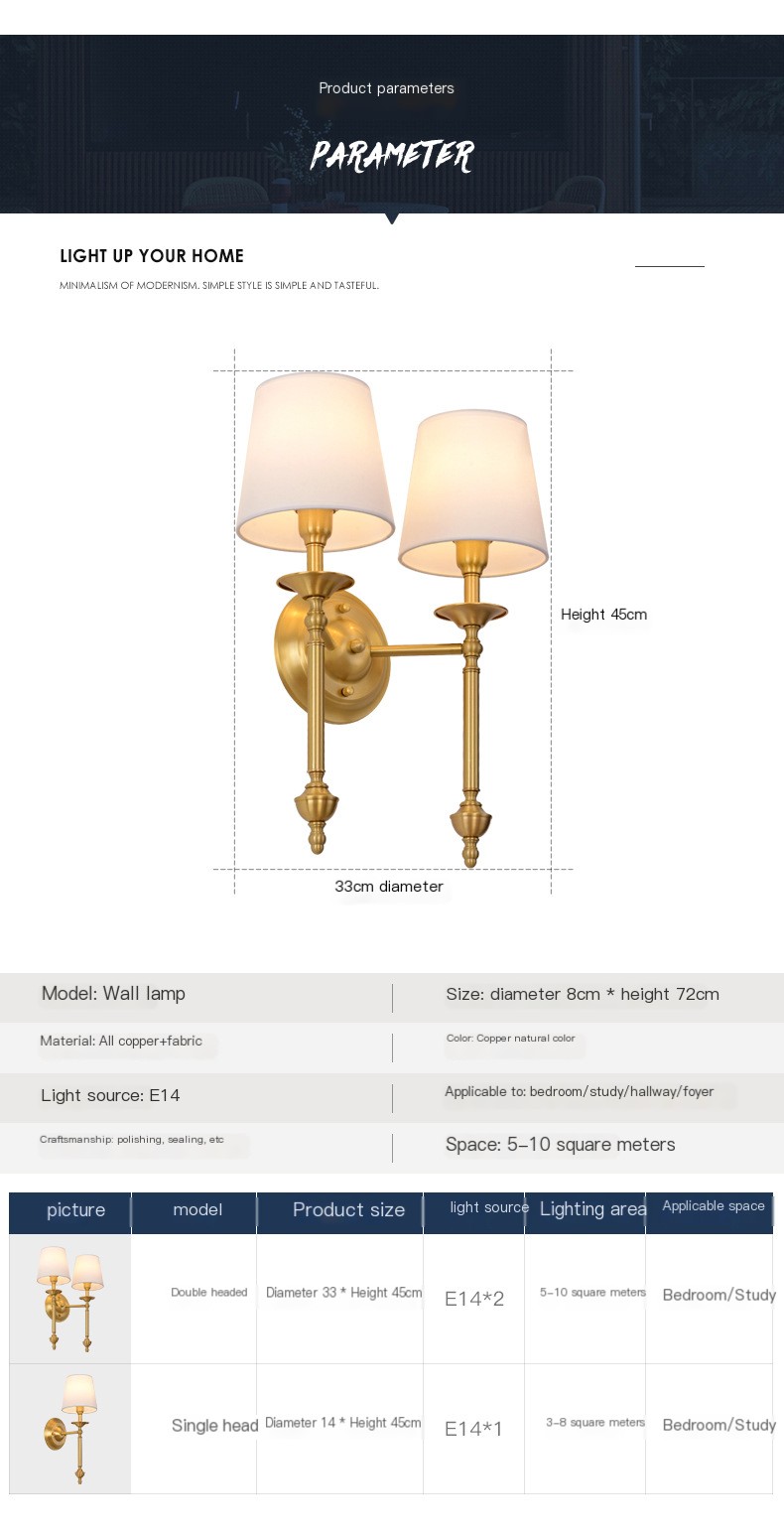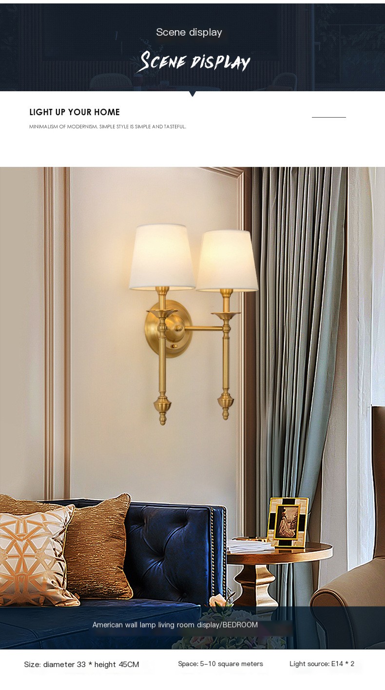 Illuminate your space with our stunning full copper wall lamp, designed to enhance the beauty of any room. This American-style fixture is perfect for bedrooms, living rooms, and even upscale venues like villas and clubs. The sleek, minimalistic design ensures it seamlessly integrates with various decor styles, providing both functionality and elegance.